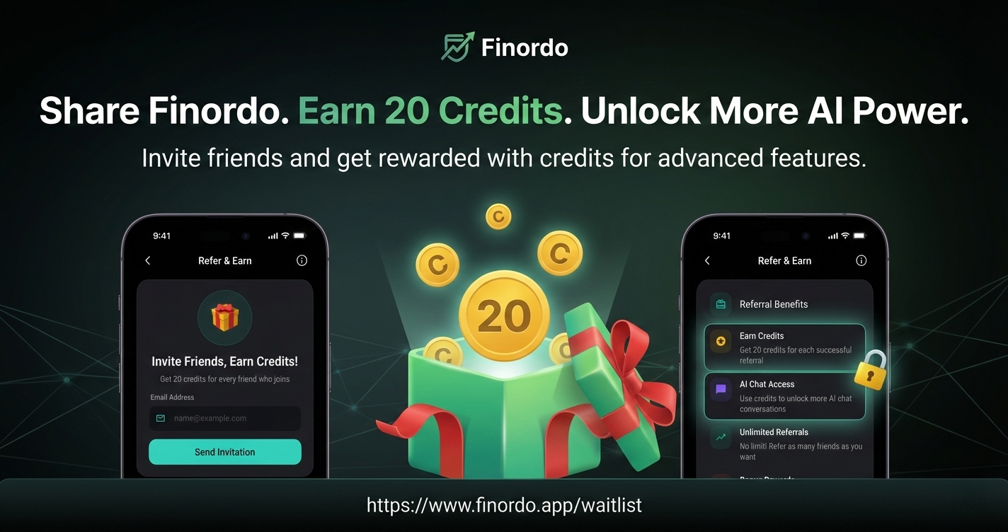 We are turning financial tracking into a community game. Invite friends to Finordo, earn 20 credits per referral, and unlock premium AI limits without spending a dime. Here is how to gamify your financial growth.